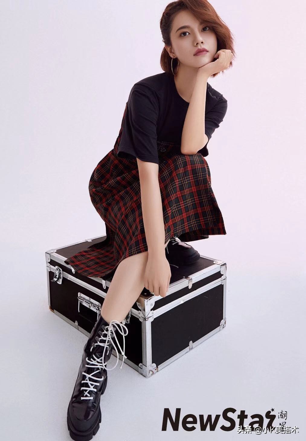 格子衣服在秋季穿起来非常好,爱美的女孩也喜欢在秋天穿裙子。姜佩瑶穿着勃艮第的格子裙搭配马丁靴,他的头发颜色被染成紫红色以呼应。的确,她是90年代出生的时尚女孩。