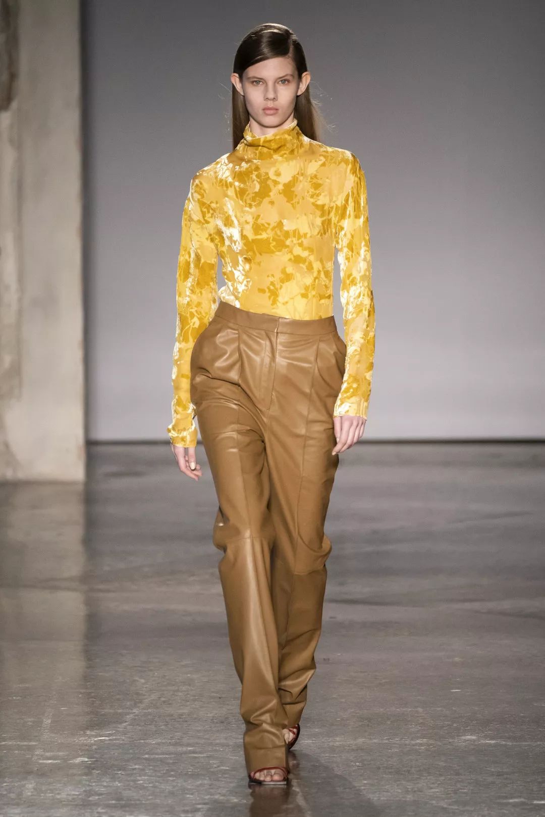 黄色套装组合足够飒,适当露肤更容易驾驭。